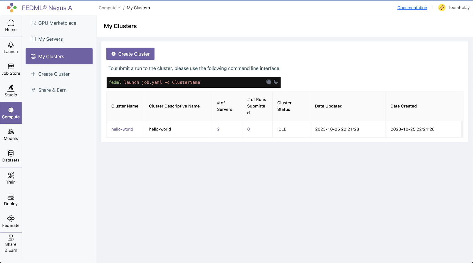 Step 3. Create a cluster of your servers bounded to the FEDML Nexus AI Platform: